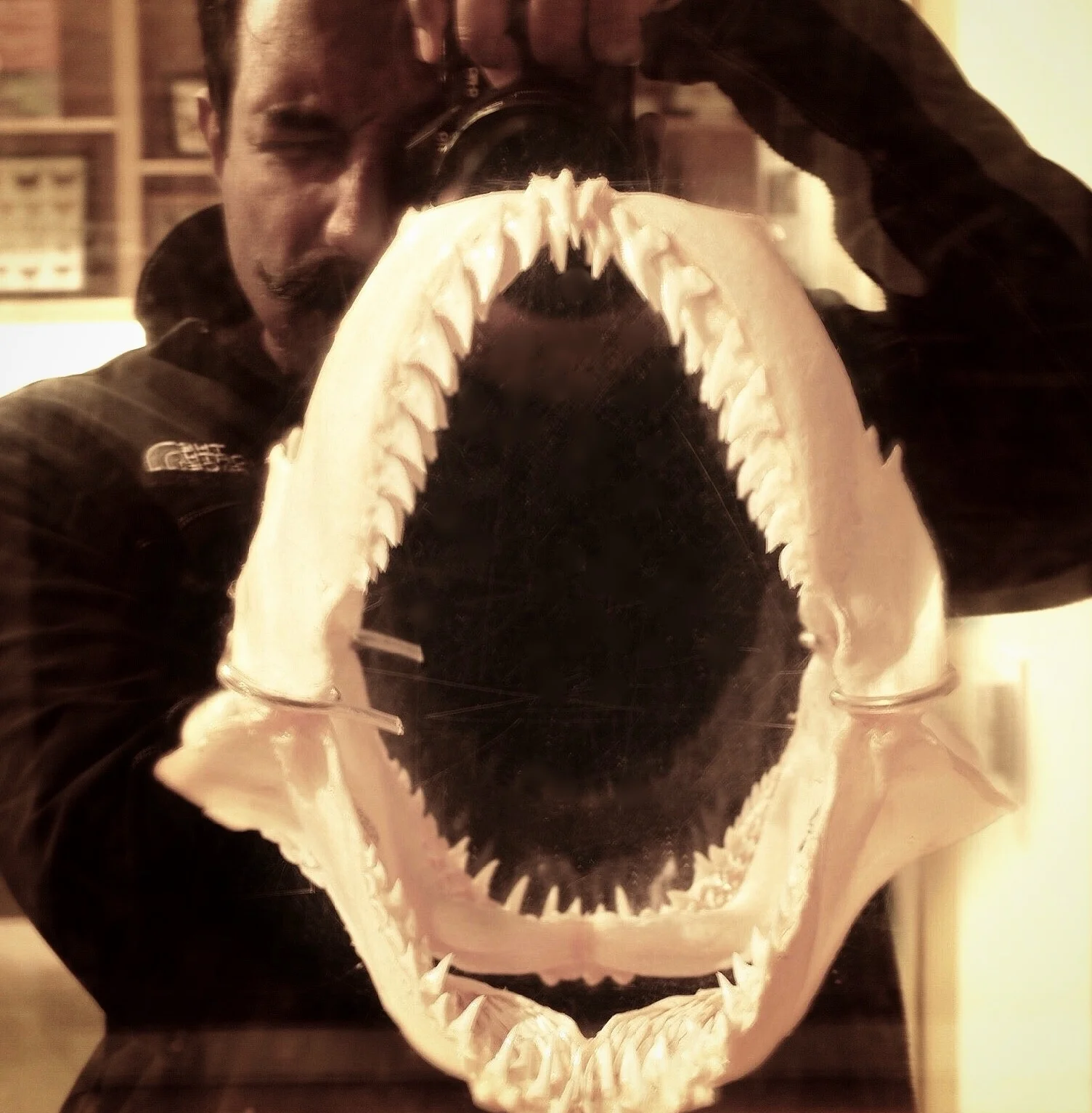 With the jaws of a Snaggle-tooth shark at the California Academy of Sciences